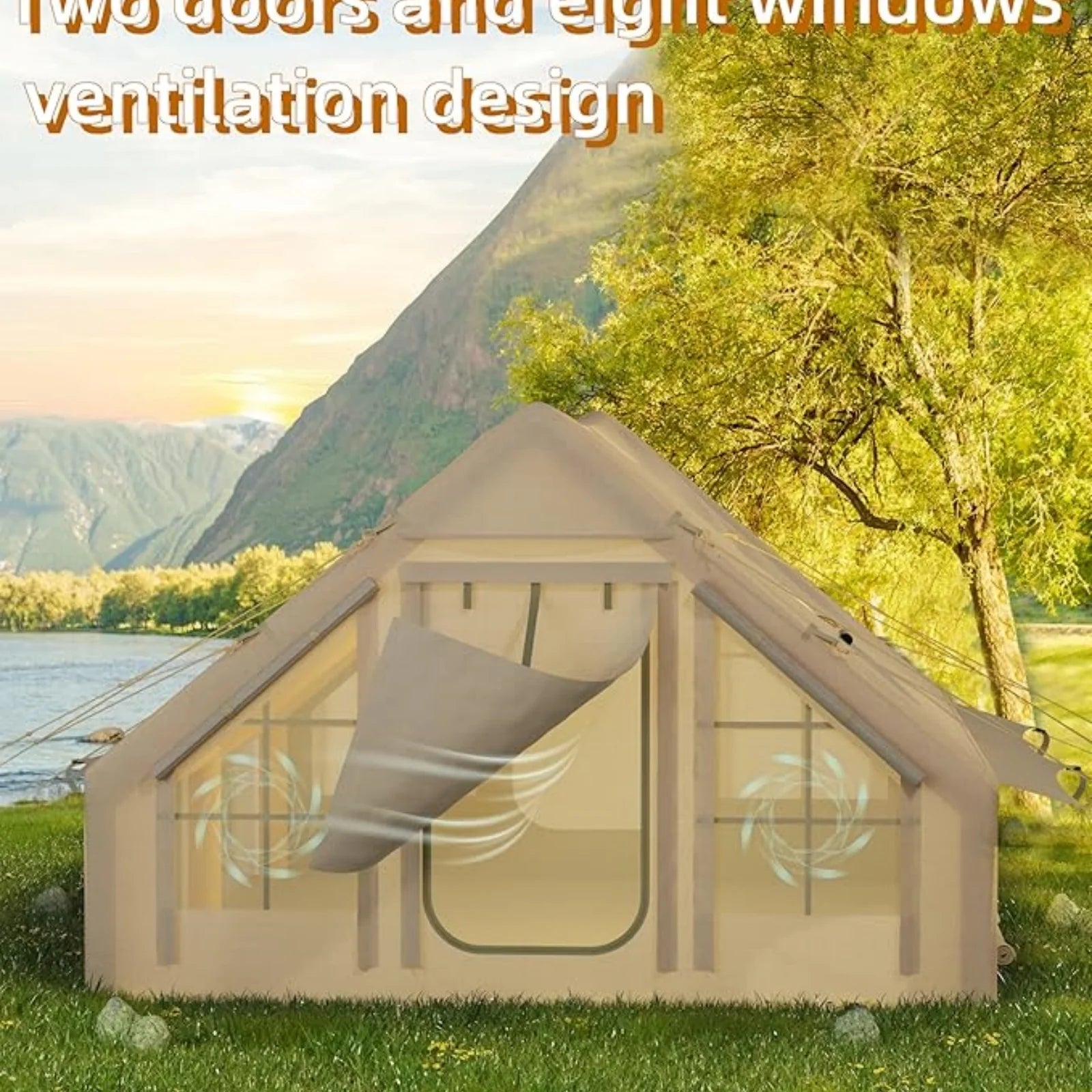6-8 Person Inflatable Camping Tent, Large Inflatable Tent House with Air Pump, Quick Assembly Camping Tent, Waterproof Oxford Fa