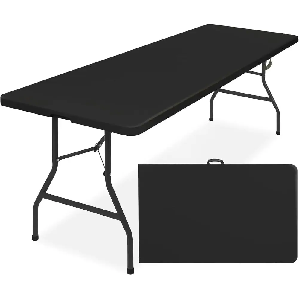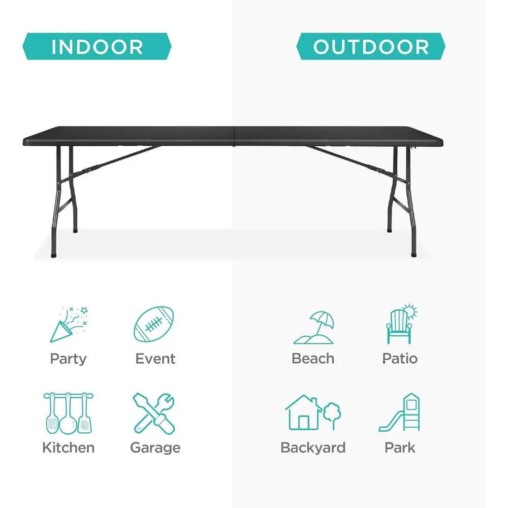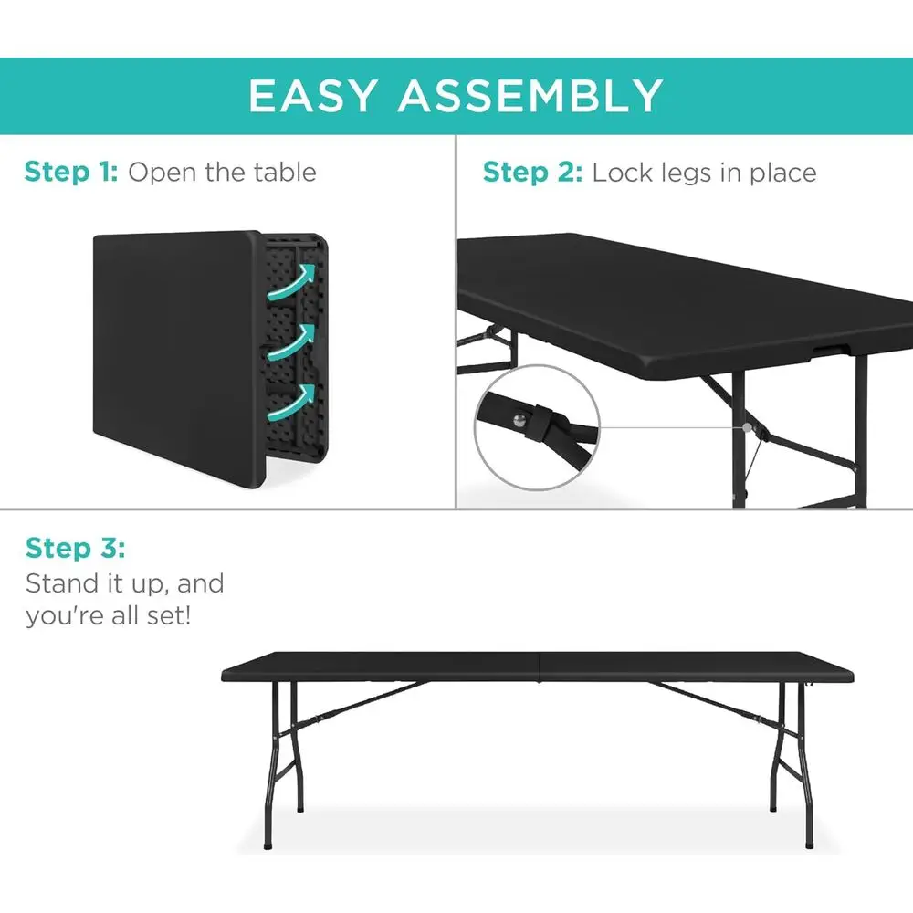 8ft Plastic Folding Table, Indoor Outdoor Heavy Duty Portable w/Handle, Lock for Picnic, Party, Pong, Camping - Black