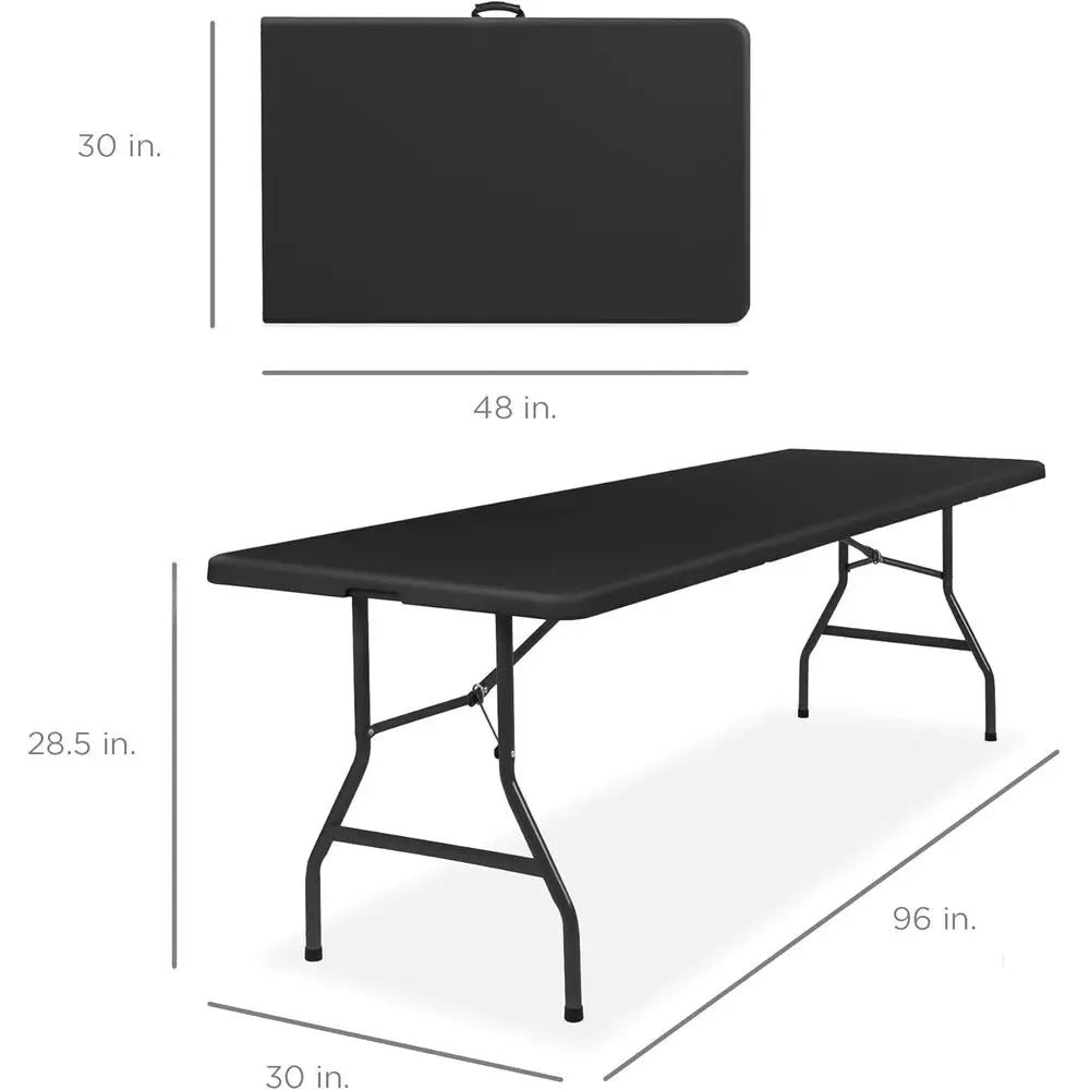 EASY ASSEMBLY: Table is ready for use right out of the box; simply unfold it, lock the legs to keep it sturdy, and your table is good to go!; OVERALL DIMENSIONS: 96"(L) x 30"(W) x 28.5"(H); Weight Capacity: 300 lbs.