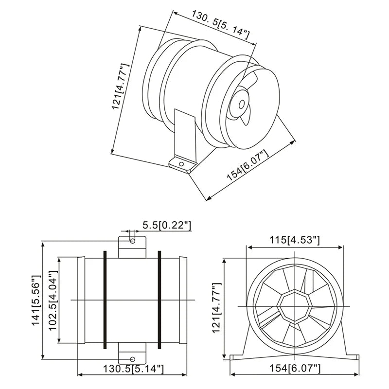 - Easy install and connect for you: Built-in mounting feet for vertical or horizontal installation; slip-on inlet/outlet ducting; two 1/8" mounting holes (CTC ~5.5"), and two raw-ended wire leads.