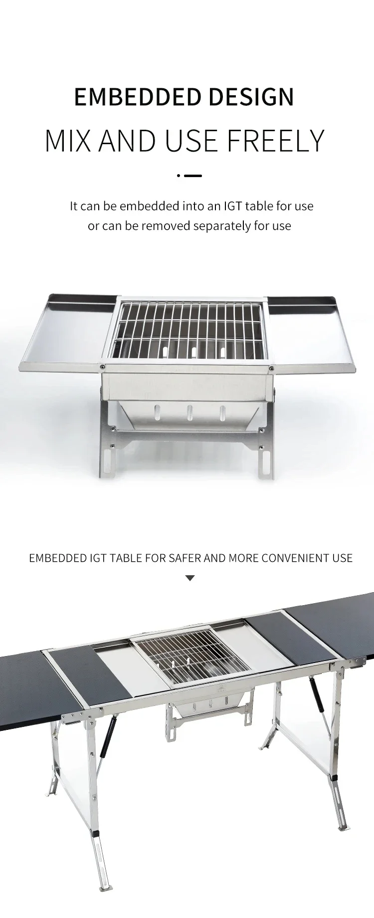 IGT Outdoor Stainless Steel Folding Barbecue Charcoal Grills Portable Camping Small Barbecue Oven Wild Journey