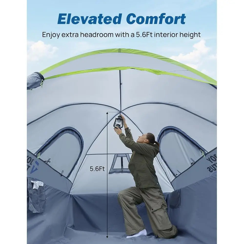 The tent is crafted from a double-layer waterproof material, made of 210D polyester oxford fabric with a PU2000 waterproof coating, ensuring protection against rain and moisture. The bottom of the tent includes an additional waterproof layer to prevent rainwater from seeping in, keeping the interior dry and clean.
