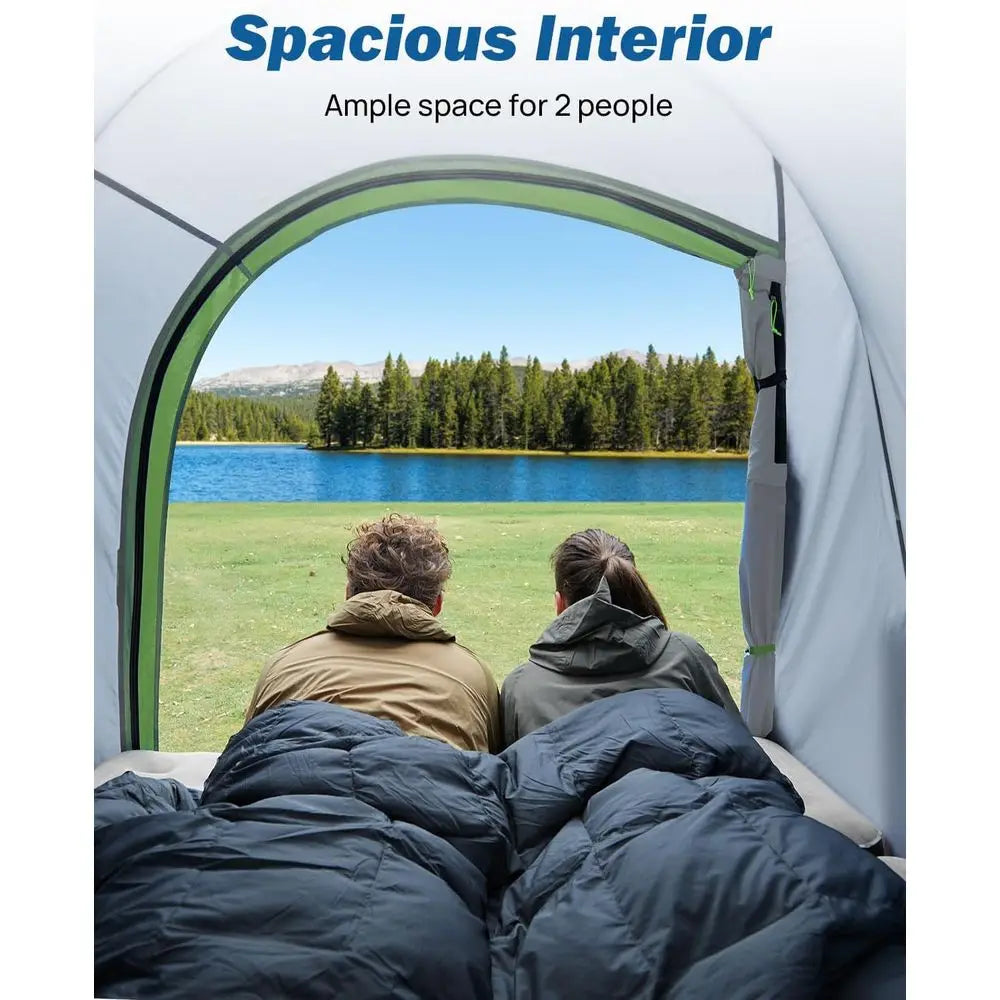The tent is compatible with pickup trucks that have a 5-foot bed, fitting models such as F150, Ram, Silverado, Tundra, Sierra, and Titan. It pairs well with a truck air mattress for added comfort during car camping, fishing, or hiking trips.