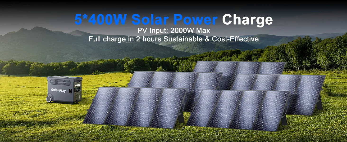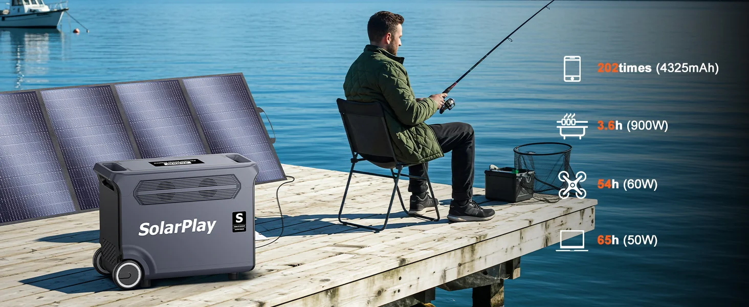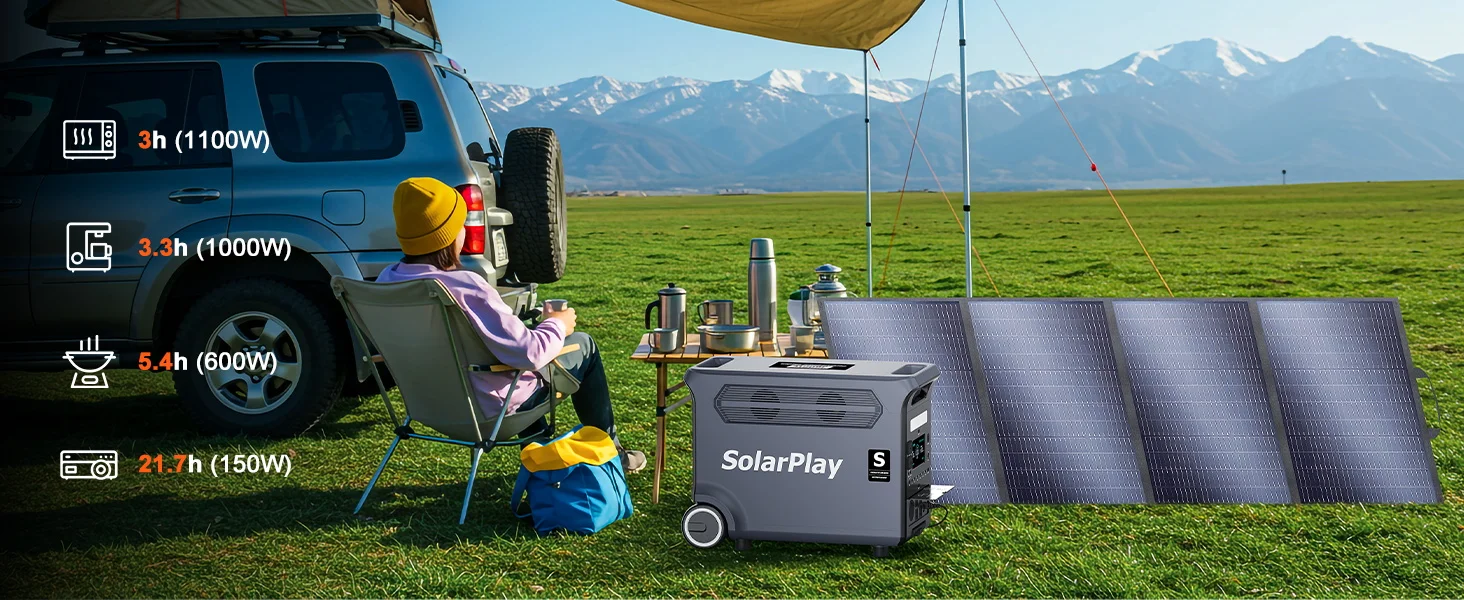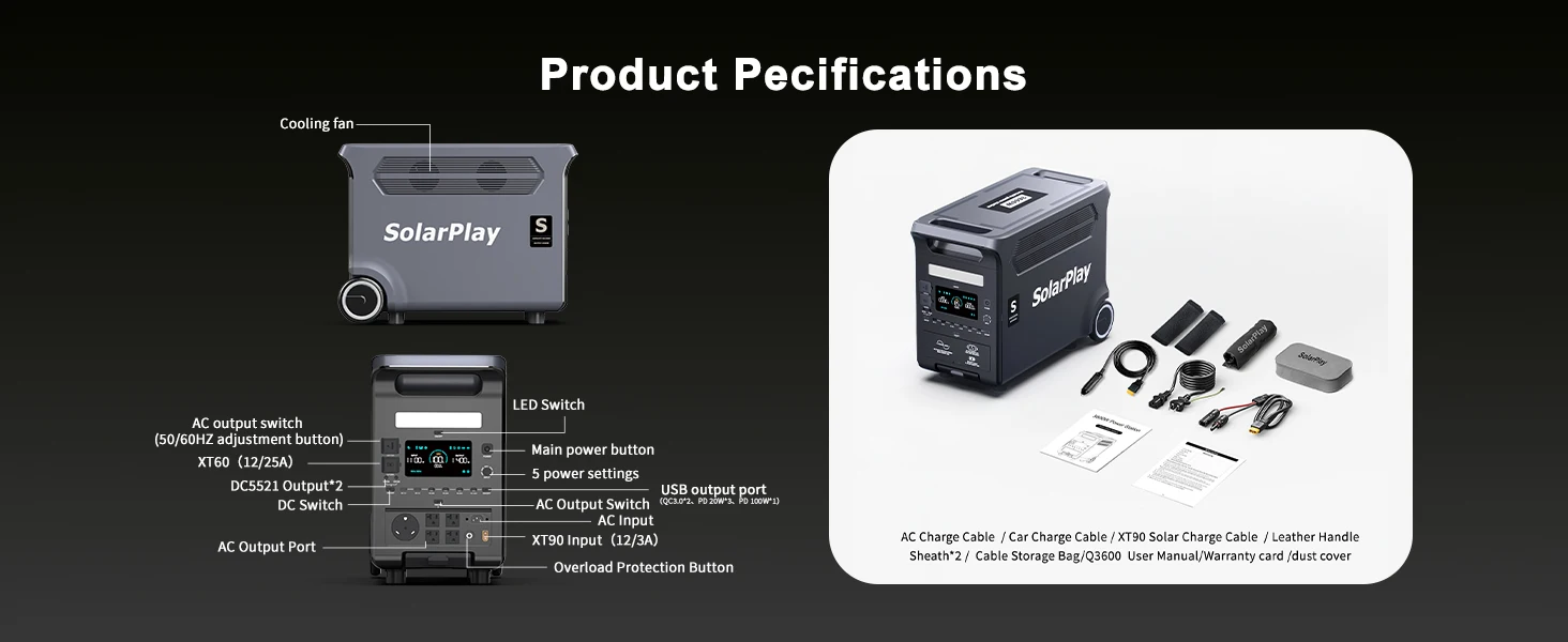 SOLARPLAY 3600W Portable Power Station 3840WH Outdoor Generator With Folable Solar Panels For Home Emergency Outdoor Camping