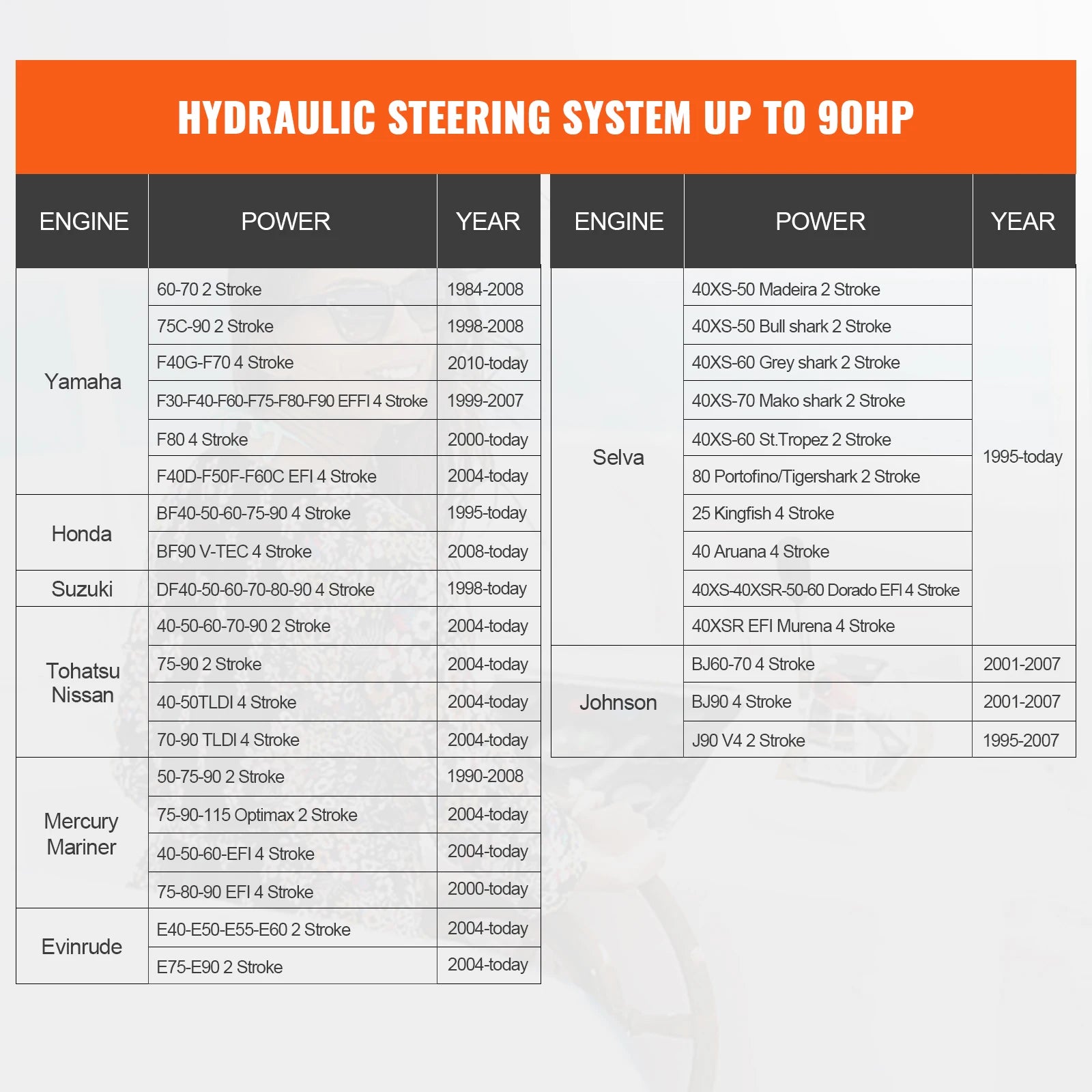 Experience effortless, precise steering on open water with the 90HP hydraulic outboard steering kit.