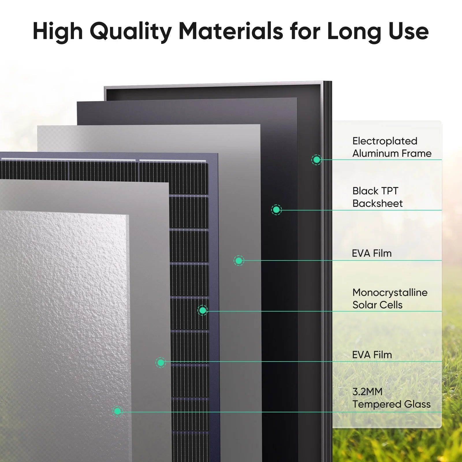 High conversion rate monocrystalline silicon solar panel, safe and durable.