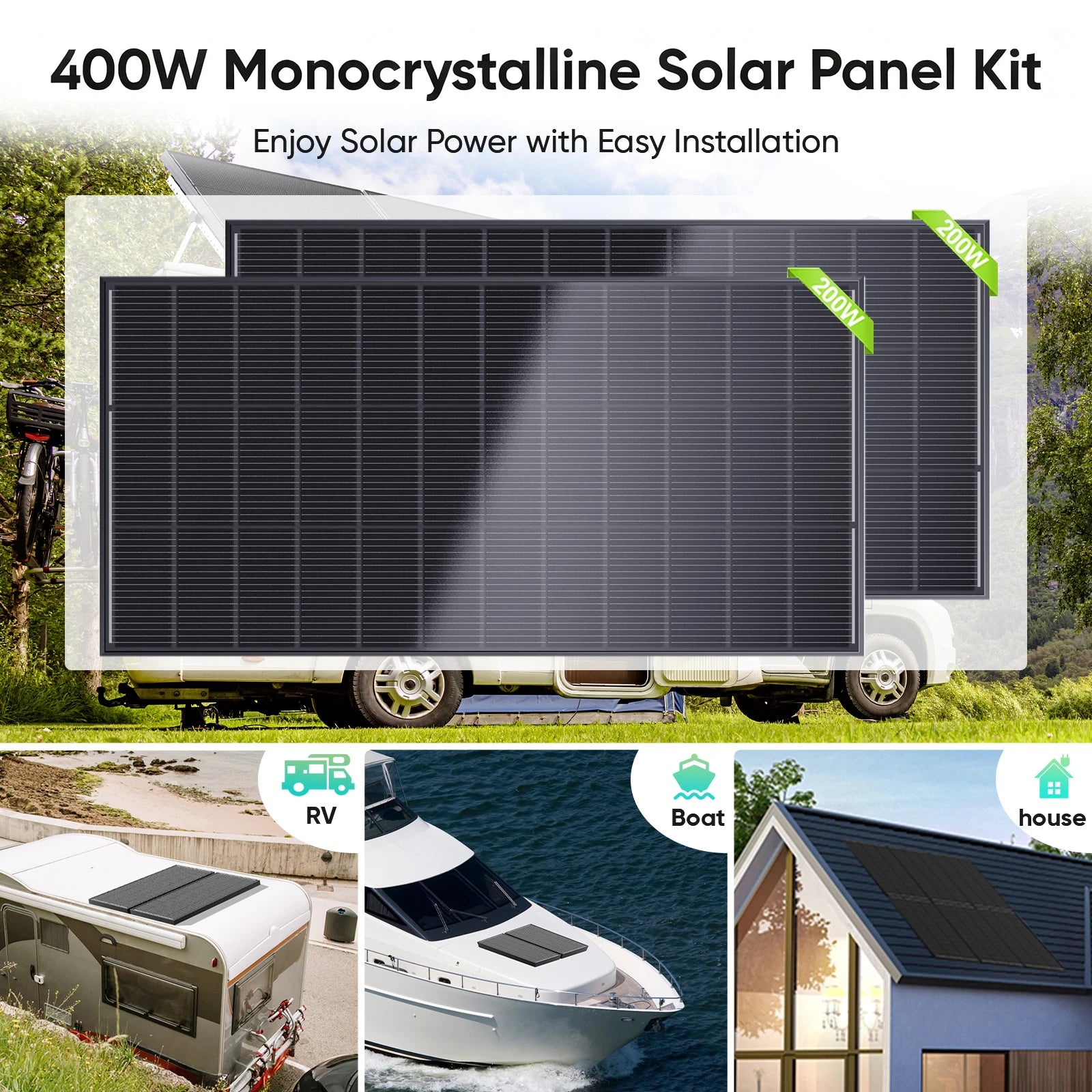 WERCHTAY 12V 200W/400W Monocrystalline Solar Panel Module Off Grid PV Power For Vehicles, RV Camper Camping Boat Shed Farm